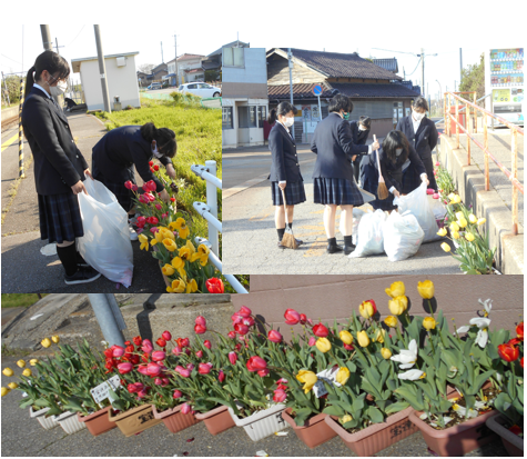 昨年度、生徒が植え、設置した宝達駅のチューリップも役目を終えました。