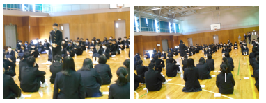 引き続いて始業式では、笠間校長から「凡事徹底(なんでもないような当たり前のことを徹底的に行うこと)で、みんなが気持ちよく学校生活を送れるように日ごろから意識してほしいと願っています。基本的な生活習慣を身につけましょう。」という趣旨のお話しがありました。