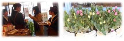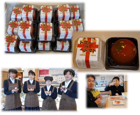 16時~18時、松月堂さんで「トマトinトマト~オムタンの宝物~」の試食販売会が行われました。家庭部員4人が、お客さんに試食を勧めたり、スイーツの紹介をしました。