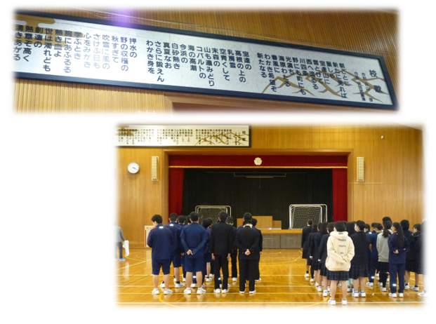 卒業式まで1週間となりました。今年の卒業式の式歌は、「友~旅立ちの時~」です。卒業生の心に届くよう、気持ちを込めて歌いたいです。1年生は、体育館で歌練習をしました。
