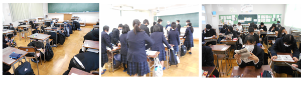 事故発生の放送後、生徒は机の下にしゃがみ、次の避難指示の放送で、密になることに注意を払い