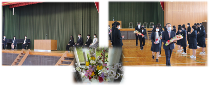 今年度は、卒業生と在校生代表の送辞の生徒、保護者、教職員のみ参列した式となりました。