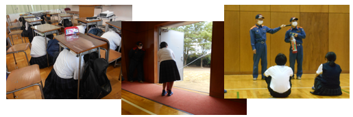 「15:00に能登半島沖で大規模地震が発生し、宝達志水町でも震度5程度の揺れが生じた。その後1階学務員室から出火した。」という想定で避難訓練を実施しました。