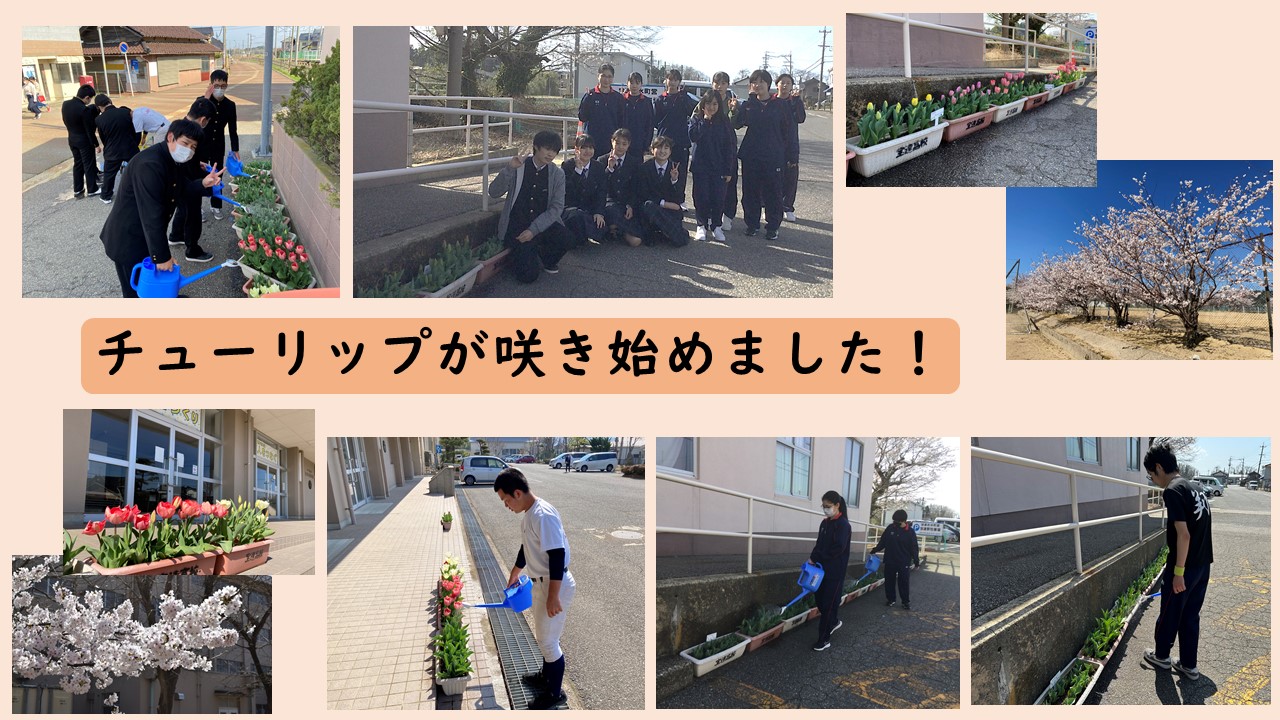 3月に生徒玄関と宝達駅に設置したチューリップが咲き始めました。