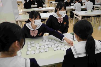 大会の中身もその名に負けず、100首覚えるのはもちろん、札の取り方まで「ちはやふる」を彷彿とされる生徒もちらほら。学年だよりなどでその成績も見ていただきたいです。