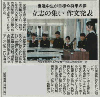 北陸中日新聞が前半の「意見発表」、北國新聞が後半の「講演会」について新聞で報道していましたので紹介します。