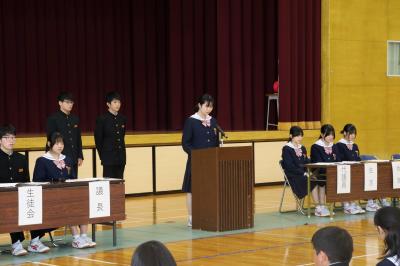 宝達中の生徒も、学校や町のいいところを紹介。「給食のカレーは甘口・辛口選べます」のコメントには、いつもどよめきが起こります。