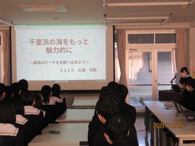 最終発表にあたり,町から寳達 典久町長をお招きし,調べ・まとめたことを直に聞いていただくことができました。