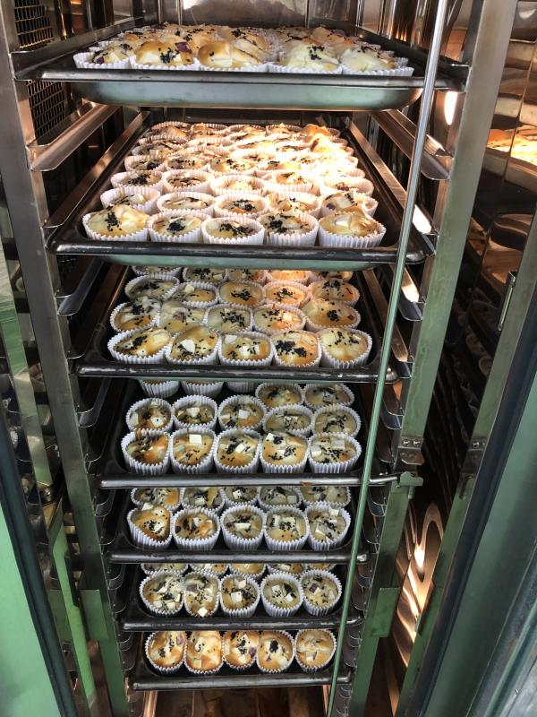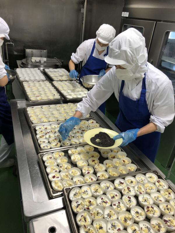本日の給食で、デザートに手作りの米粉マフィンが出ました。