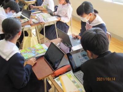 1年生はアジア州の学習で,アジア州が経済発展できている理由を班ごとに協力して調べていました。
