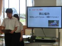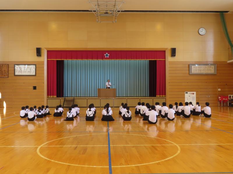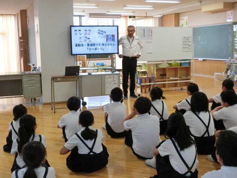 10月1日(水)、全校集会がありました。10月以降今後の生活に向け、校長先生から次のようなお話がありました。まずは、先日9月29日に、児童生徒皆さんの授業の様子を見に来られたたくさんのお客さんが、その様子について「よく考えて学んでいる」「楽しそうに勉強している」とほめていたことを児童生徒に伝えました。その後、『リーダー性』についてのお話でした。それぞれの学年、皆さん一人ひとりが『リーダー性』を養ってほしいことを願い、運動会や青潮祭に向けてリーダー性を生かしてほしいと伝えました。皆さんにつけてほしい『リーダー性』とは? 周囲(1~9年生の仲間・同級生・先生方等)と協調しながら、自分の特性(得意・がんばる気持ち・やる気等)を生かして、集団の目標達成に貢献することができることです。」とお話されました。