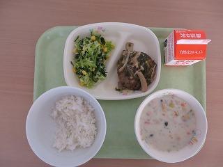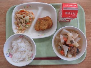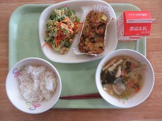 白ごはん 豆腐ナゲット 甘酢和え 含め煮 牛乳