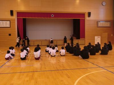 4月9日5限目、本校体育館において「校外子ども会」の集会がありました。はじめに、担当の谷村先生からこの会の趣旨・目的(夏休み実施のラジオ体操について)等の説明がありました。その後、各地区に分かれて、簡単な自己紹介と地区代表の児童生徒の確認、ラジオ体操をする場所やラジオの準備者について相談・確認をしました。縦割り活動のスタートとなる大変有意義な時間になりました。ラジオ体操に関しては、できるかどうかはわかりませんが、一歩でも前進できることを信じ、また、地域の方と交流する良い機会であり、児童生徒が心身ともに成長できる場と捉え、進めていきたいと思います。保護者の皆さん、地域の皆さん、ご理解・ご協力をお願いいたします。
