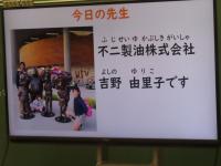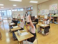 11月21日(木),大阪から講師の方2名をお招きし,生活科の授業で,自分たちが育ててきた「大豆」について学習しました。大豆食品についてのビンゴでは大盛況でした。また,大豆についてのクイズや大豆食品の試食など,楽しく学ぶことができました。大豆を育てるために使う水の量と牛肉になるまでに使う水の量の違いに驚きました。今後は,自分たちが育てた大豆を使って活動する予定です。