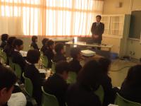 12月13日(金)の午後には、前期課程の4・5年生を対象に、同じく県能登北部福祉センターの北野さんを講師にお招きして「タバコやお酒の害」について詳しくお話していただきました。