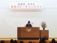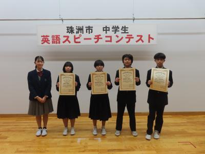 11月22日(金),緑丘中でスピーチコンテストが開かれました。本校からは,7年生2名,8年生,9年生からそれぞれ1名が出場しました。練習を重ねて,本番に臨みました。それぞれの想いを伝えることができました。普段の授業とは違う姿もみることができました。人前で,英語のスピーチをすることは緊張すると思いますが,練習してきたことや発表の経験は自分のためになります。この経験で,ひとまわり成長したことと思います。4名の皆さん,お疲れ様でした。