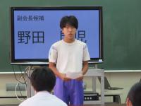 9月25日(水)、後期生徒会役員選挙が行われました。立候補者が後期生徒会の活動にかける思い、学校をよりよくしていこうとする思いを、全校生徒に訴えていました。話す姿勢、聴く姿勢ともによく、しまった演説会になりました。