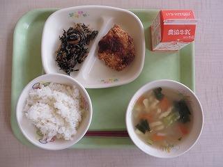白ごはん チキンカツ ひじきの炒め煮 大根のみそ汁 牛乳