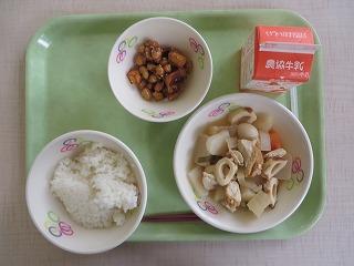 白ごはん 牛乳 親子煮 切干大根の炒り煮