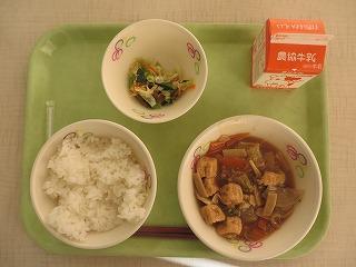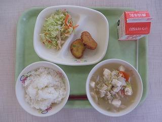 白ごはん 豆腐ナゲット 甘酢和え とり野菜 牛乳