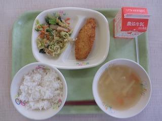 白ごはん 白身魚のフライ ごまあえ みそ汁 牛乳