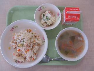 ピラフ ポテトサラダ コンソメスープ 牛乳