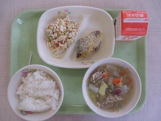 白ごはん 白身魚の塩麹パン粉焼き 切干大根のごまネーズ さつま汁 牛乳