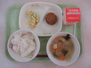 白ごはん メンチカツ きゃべつとちくわのタルタルサラダ みそ汁 牛乳