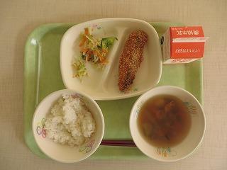 白ごはん 魚のチーズ揚げ もやしのごま酢和え のっぺい汁 牛乳