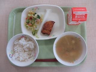 白ごはん 鶏肉のたつたあげ もやしの甘酢和え さつま汁 牛乳