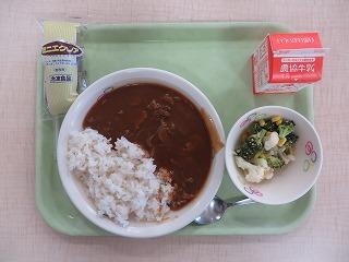 ポークカレー フルーツヨーグルト 牛乳