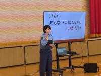 5月27日(火)、5限目は前期課程児童を対象に、6限目は後期課程生徒を対象に、珠洲警察署の水口さんを講師としてお招きし、不審者対応訓練を実施しました。後期課程は「いじめ防止講座」も最初の10分程度でお話していただきました。