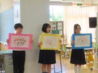 5月28日(水)の朝、児童生徒集会がありました。児童生徒会の執行部からのお話でした。先日募集した缶バッジのイラストの候補が3作品に決まったことのお知らせでした。2年生の谷中さん、6年生の中口さん、9年生の薮田さんの作品が候補として選ばれました。おめでとうございます。この後、最終的にどんな缶バッジになるかは、次回のお楽しみだそうです。応募してくれた児童生徒の皆さん、候補を絞るために話し合いをしてくれた執行部の皆さん、ありがとうございました。どんな缶バッジが出来上がるのか、楽しみですね。