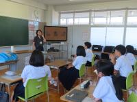 6月11日(水)、8年生の総合的な学習の時間にゲストを招いて、講話をしていただきました。8年生は「珠洲の食」をテーマに学習を進めている関係で、今回お忙しい中、すずキッチンにお勤めの浜中康男さんをお招きし、生徒からの質問も交えながらお話をしていただきました。笑いあり、涙ありの内容で、生徒にとっては十分将来のこと、珠洲のことを考えることのできる素敵なお話だったと思います。総合的な学習の時間をしっかりと進めていくことはもちろん、各自の将来についても考えていきましょう。『ふるさと珠洲科』の発表会が楽しみですね!