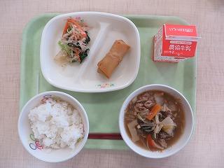白ごはん 春巻 もやしのナムル 八宝菜 牛乳