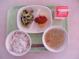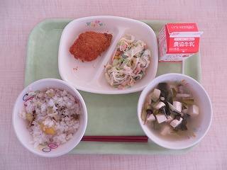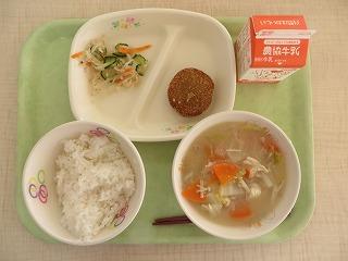 白ごはん メンチカツ 切干大根の甘酢あえ とり野菜 牛乳