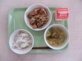 白ごはん 豚肉のくわ焼き ひじきの炒め煮 みそ汁 牛乳