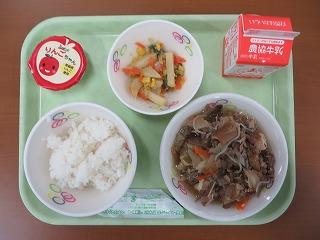 白ごはん 能登牛のすき焼風煮 じゃがいもの炒め物 ゼリー 牛乳