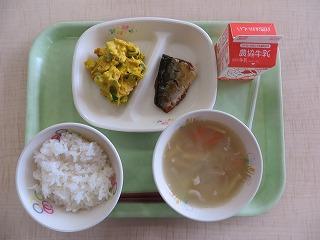 白ごはん サバの生姜煮 かぼちゃサラダ かす汁 牛乳