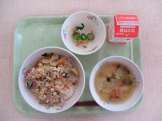 白ごはん シューマイ 中華和え 家常豆腐 牛乳