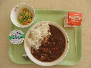 ハヤシライス コールスローサラダ ヨーグルト 牛乳