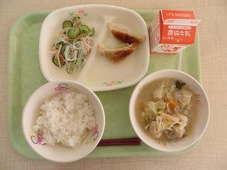 白ごはん 焼ぎょうざ バンサンスー とり野菜 牛乳