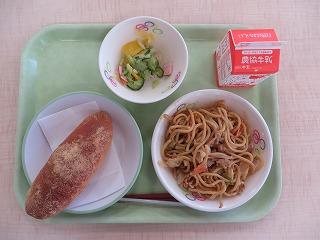 きなこ揚げパン 焼きそば カラフルサラダ 牛乳