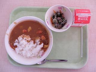 カレーだいまおうのまほうカレー ひじきのサラダ 牛乳