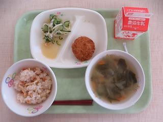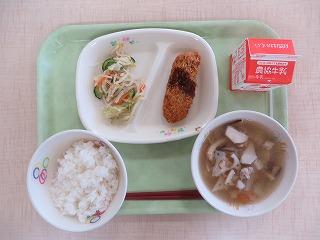 白ごはん 白身魚フライ ごま酢あえ のっぺい汁 牛乳