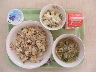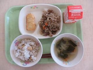 栗ご飯 いか天 豚肉とごぼうのしぐれ煮 みそ汁 牛乳