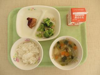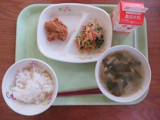 白ごはん 鶏肉の竜田揚げ 青菜のごまあえ みそ汁 牛乳