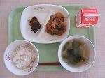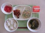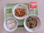 白ごはん さばの竜田揚げ もやしのごま酢あえ ピリ辛みそ汁 牛乳