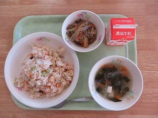 鮭チャーハン きんぴらごぼう みそ汁 牛乳