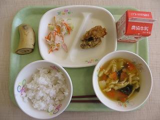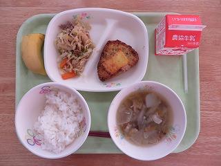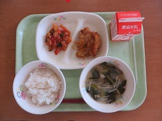 白ごはん 鶏肉のたつたあげ キャベツの甘酢和え さつま汁 牛乳